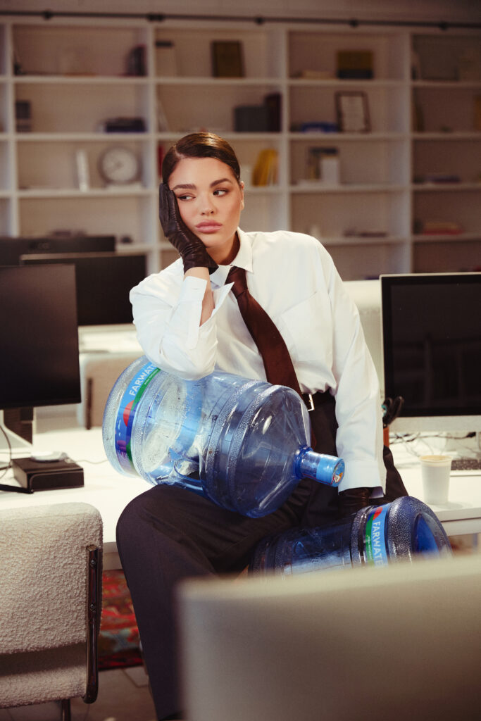Office Alone — это про то самое утро после праздников, когда календарь уже зовёт в офис, а тело и голова ещё догоняют реальность. Сбитый режим, желание восстановиться, вернуть баланс – водный, эмоциональный, внутренний. Именно поэтому в кадре появляются бутыли с водой: как символ перезагрузки, попытки прийти в себя и собрать себя заново.