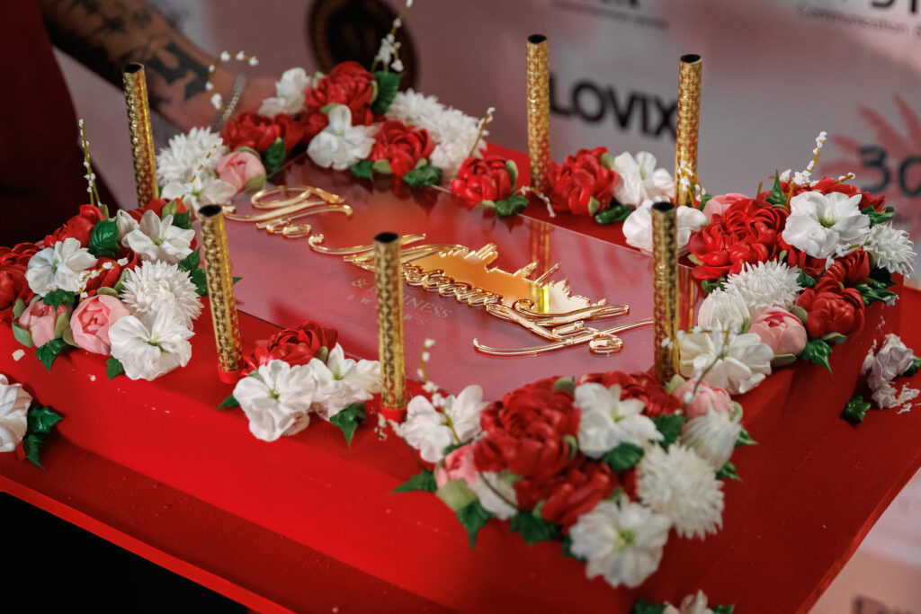 Кульминацией вечера стало торжественное представление уникального торта от звездного кондитера Ирины Мошкиной — настоящего шедевра кондитерского искусства, объединившего в себе изысканный вкус и эстетическое совершенство.
