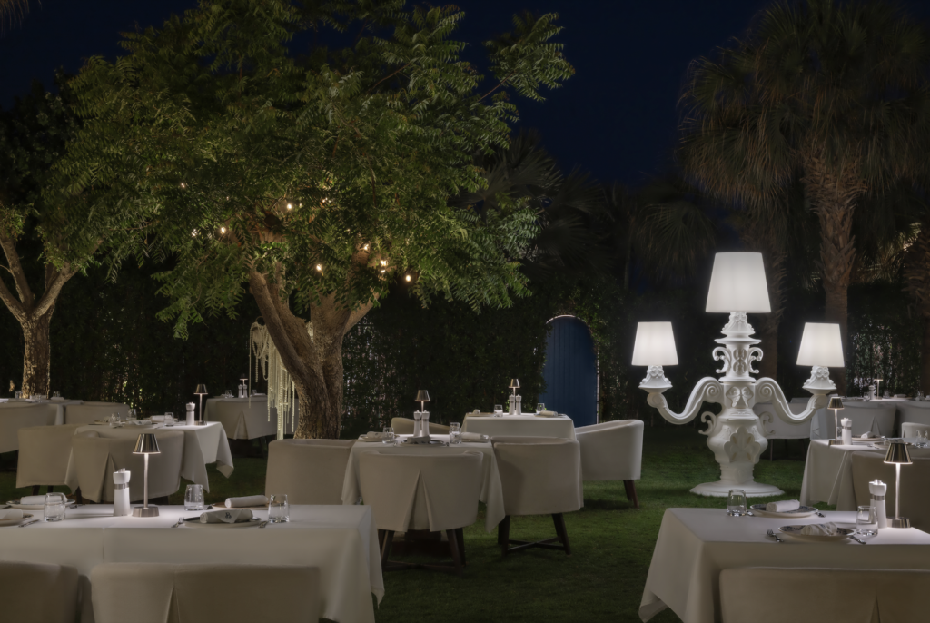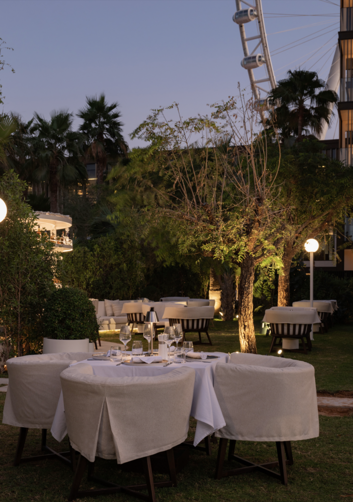 В ресторане Blue Door при  отеле Delano Dubai к Рамадану подготовили особый ифтар, объединяющий анатолийские и левантийские традиции, в уединённом саду на Bluewaters, среди зелени и мягкого вечернего света. Ужин начинается с классической ифтар-подачи: финики, мёд, каймак, оливки и сыры, далее — чечевичный суп, щедрый выбор мезе, горячие закуски вроде мюджвера и мант, а также блюда на углях — кебабы, курица с пряностями, рыба по рецептам османского дворца и классические гарниры. Десертная часть выстроена как отдельный акцент вечера: фисташковая пахлава, гюллач с розовой водой, кунафа, катайеф, лукум и сезонные фрукты. Формат задуман как гастрономический опыт — уважительный к традициям, но выстроенный в современной эстетике: спокойный ритм, внимание к деталям и ощущение приватного ужина у моря.