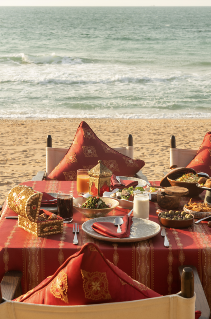В этом сезоне Banyan Tree Dubai представляет два формата ифтара на Bluewaters. Iftar on the Beach:  ужин прямо у моря на 500-метровом частном пляже курорта. Длинные столы под открытым небом, мягкий свет заката, живая традиционная музыка, BBQ под открытым небом и sharing style меню с ближневосточными акцентами создают атмосферу спокойного и уютного вечера у воды. Формат рассчитан на компании от 10 человек — идеальный сценарий для ужина на закате.