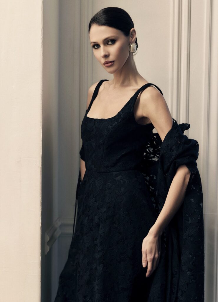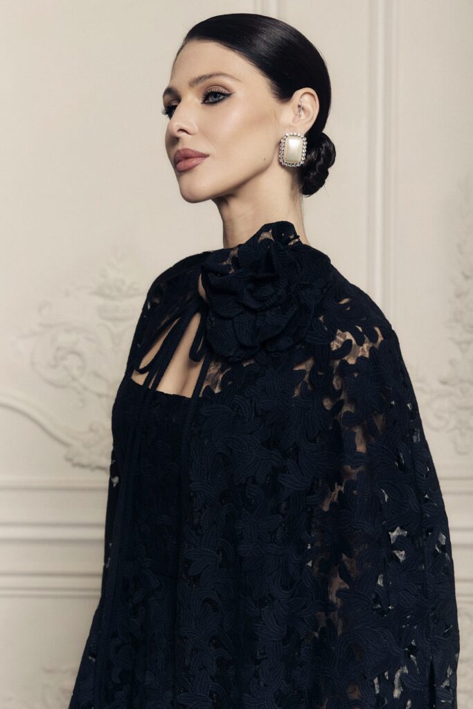 Невесомое французское кружево, итальянский хлопковый бархат, струящийся шелк, благородная шерсть, воздушная органза! Роскошная палитра цветов, внимание к каждой детали, ювелирная работа мастеров — всё это превращает каждое изделие в произведение искусства. Золотая вышивка, созданная художниками Третьяковской галереи, авторские цветы ручной работы, разработанные для данной капсулы, кристаллы Swarovski, рассыпанные по шелку кади, сложные корсетные решения — всё это образы, созданные из стремления рассказать о женщине больше, чем способны передать силуэты.