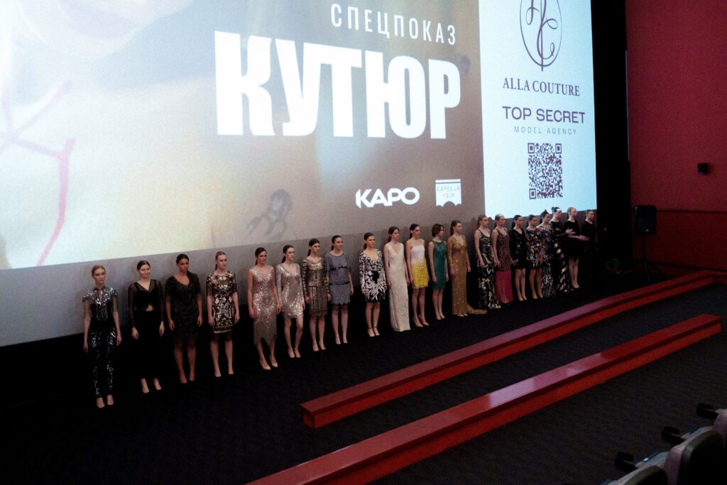Зрителям премьерного показа в кинотеатре «Каро» повезло не меньше, чем создателям мелодрамы о высокой моде: они первыми увидели новые коллекции от известных российских дизайнеров Тианы Лямовой (бренд Monze) и Аллы Постновой (бренд Alla Couture).