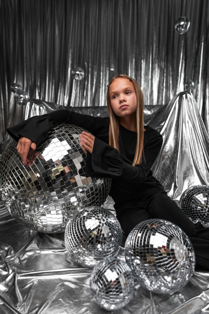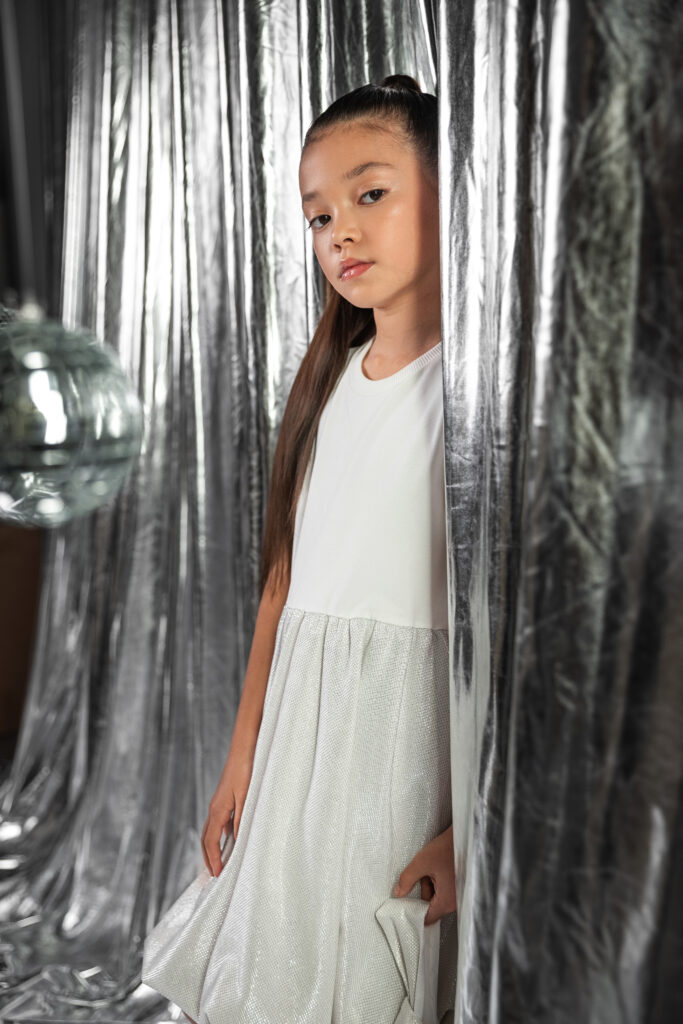 В дополнение к базовым моделям — футболкам поло и лонгсливам из кулирки пике, коллекция предлагает трендовые решения из люрекса: юбка-баллон и платья с блеском, создающие атмосферу настоящего праздника. Яркий акцент — стильная сумка, дополняющая образы и подчеркивающая индивидуальность. Не только девочки, но и мамы захотят себе такой аксессуар.