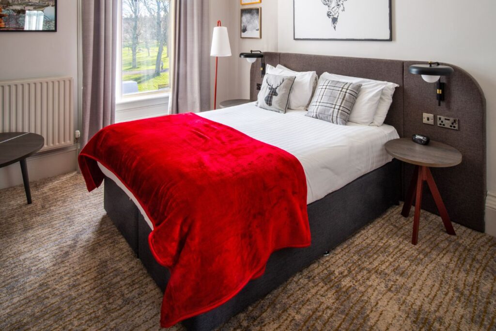 The Bruntsfield — бутик-таунхаус-отель в районе Bruntsfield, с видами на зелёные просторы Bruntsfield Links. Это тот случай, когда городская романтика начинается с воздуха и пространства: утром — прогулка по парку, днём — неспешный Эдинбург. Отель расположен в пешей доступности от главных символов города — Edinburgh Castle, Royal Mile и Princes Street Gardens — так что маршрут складывается легко, без гонки и транспорта. Вечером хочется возвращаться в The Neighbourhood Kitchen, Bar & Garden — ресторан и бар отеля, где день продолжается за ужином и коктейлями, а разговор звучит важнее планов. Здесь есть и «secret garden» за рестораном — приватный сад, который добавляет ощущение спрятанного места в самом городе.