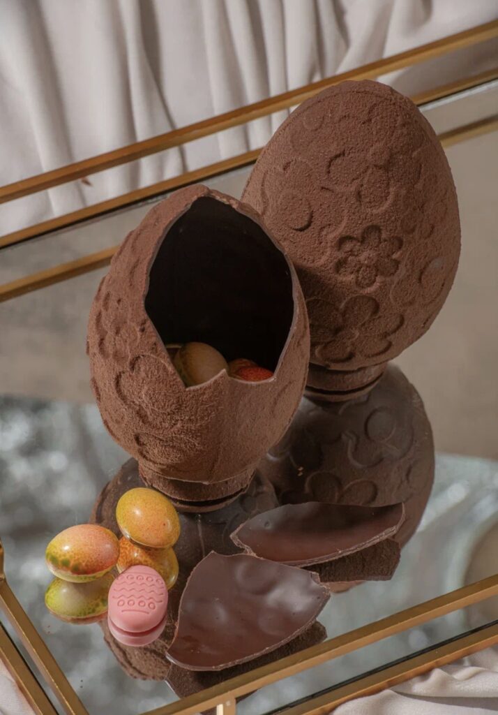 Дополнить праздничный стол можно фирменным шоколадным яйцом YURA — внутри прячется набор мини-яиц с ореховой начинкой.