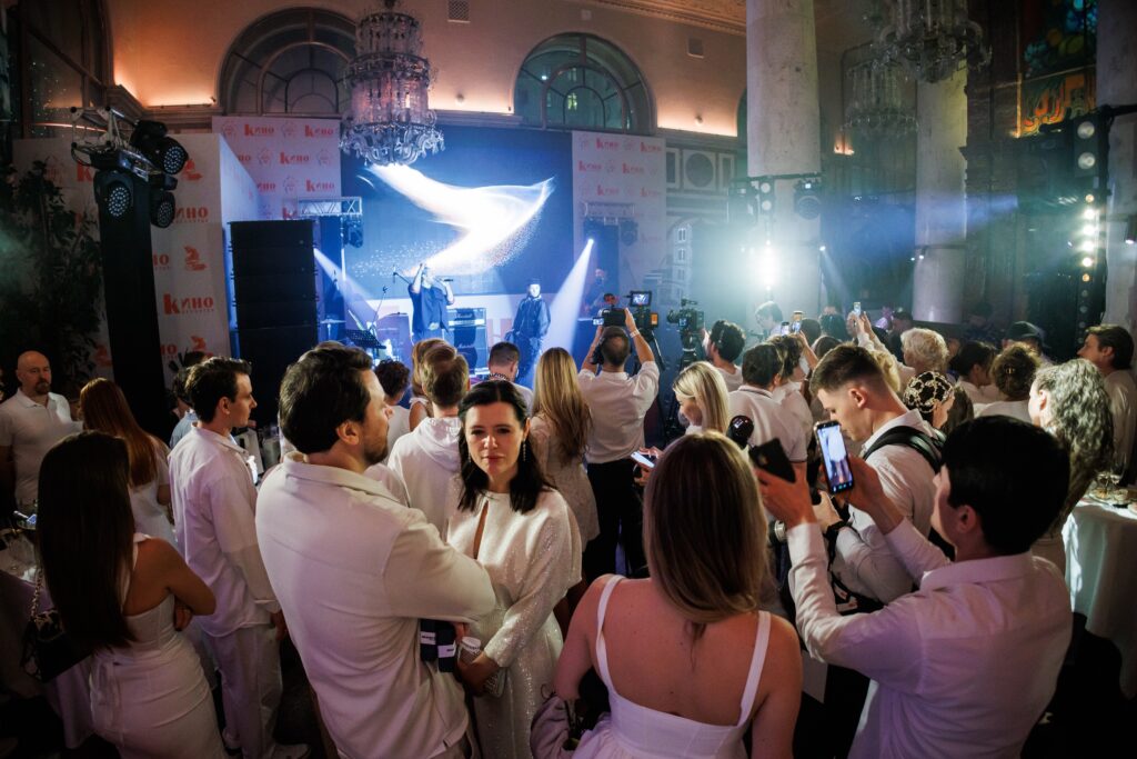 Церемония началась с яркого музыкального номера от Лео Канделаки – актера и музыканта, чье творчество органично вписывается в концепцию приема. Выступление, наполненное энергией и внутренней силой, задало тон всему торжеству, подчеркнув многогранность талантов, которыми славится российское кино.