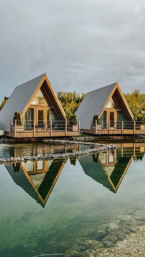 The Les — это камерное пространство, где продумана каждая деталь. На территории расположены восемь уютных домов: четыре стильных A-frame с панорамным видом на пруд и четыре дома формата Happy House, расположенные чуть глубже в пространстве комплекса. Такой формат позволяет сохранить атмосферу уединения и одновременно создать ощущение небольшого закрытого клуба для ценителей загородной эстетики.